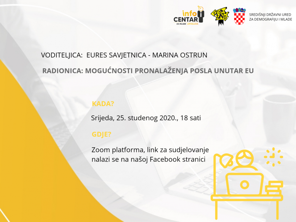 Prošlu srijedu, 24. studenog, Info-centar za mlade Lepoglava ugostio je EURES savjetnicu, Marinu Ostrun, koja je održala radionicu u online formatu. Radionica je bila na temu […]